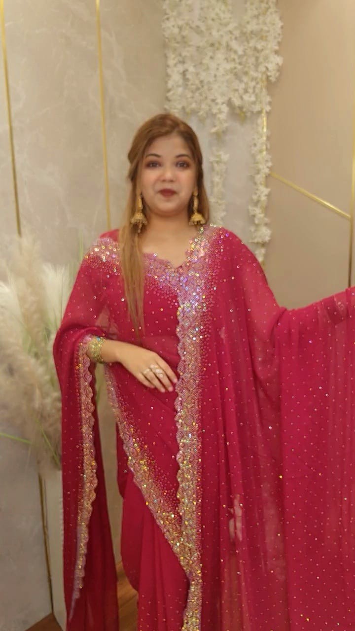 ✅Blouse pc running a thakbe ✅Sare fabric indian white gold gorget Stone nc