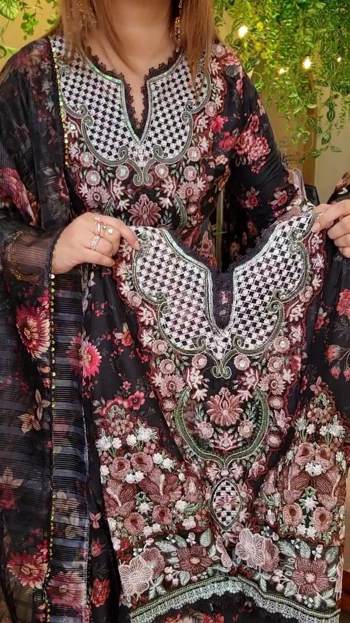 Neck and sleeves full hand embroidery work