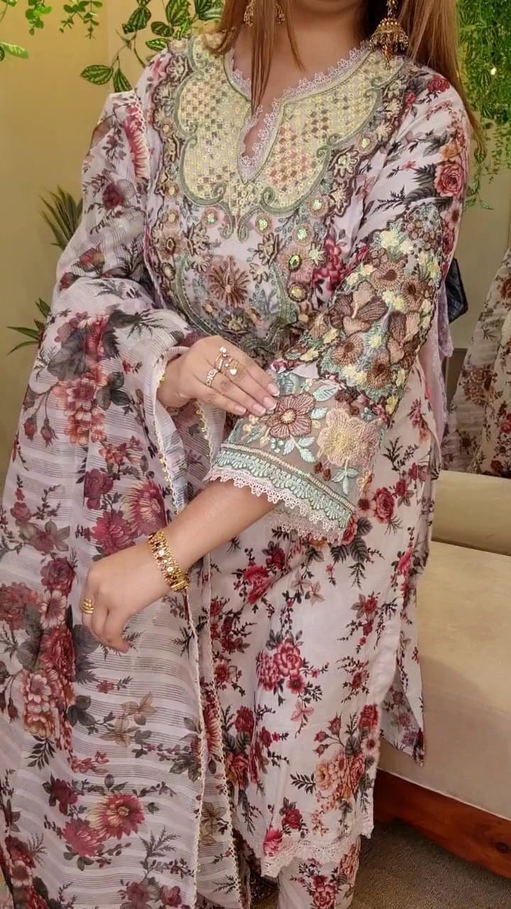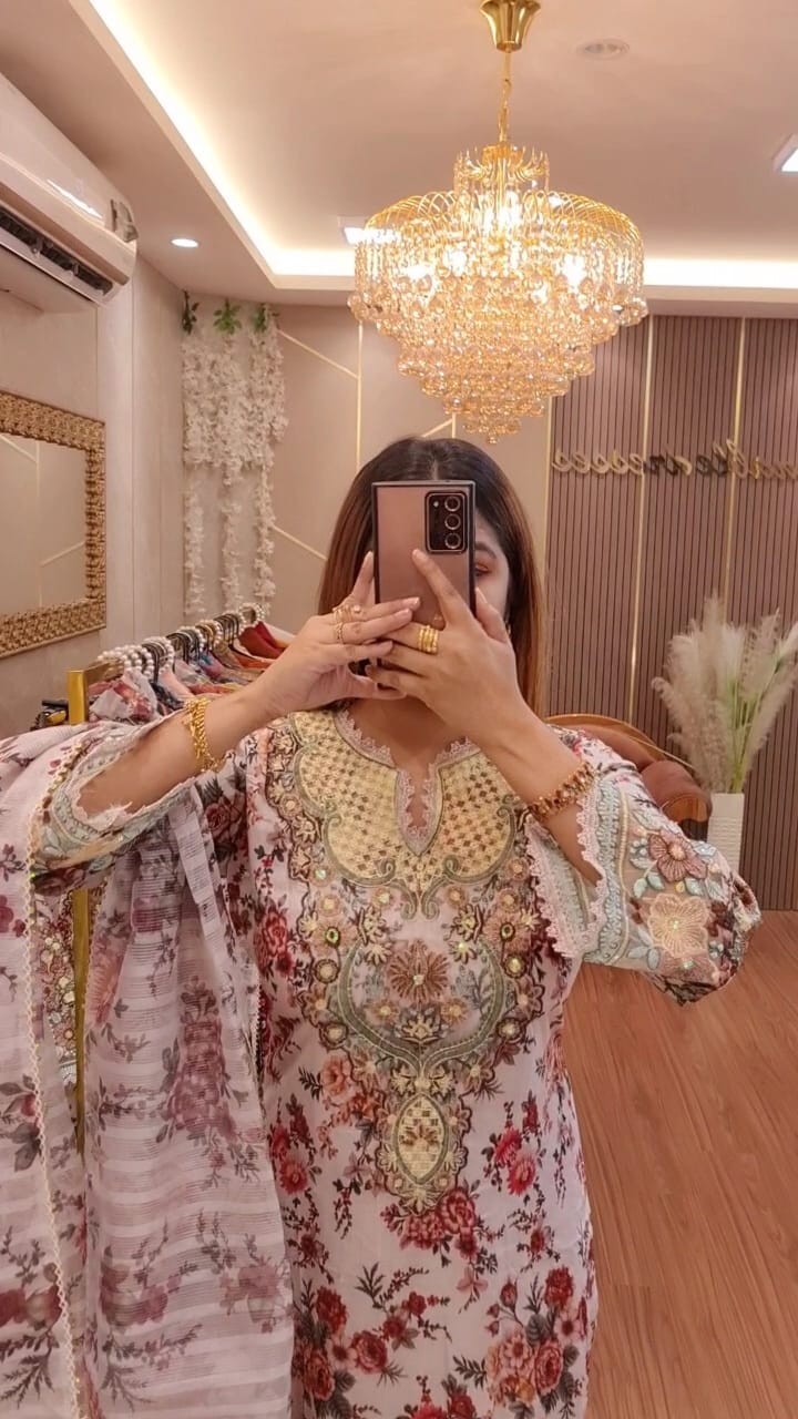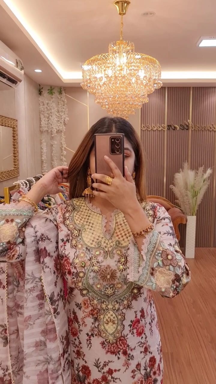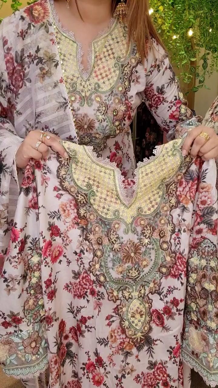 Neck and sleeves full hand embroidery work