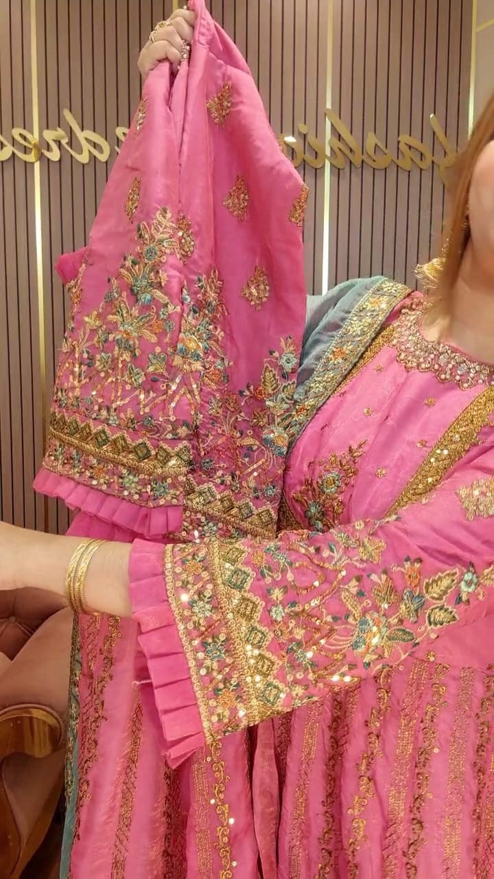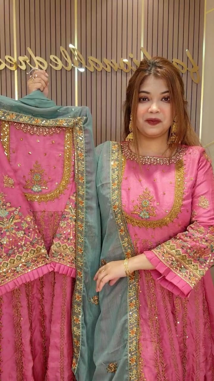 ✅Orna indian white gold gorget all ove embroidery sequence work