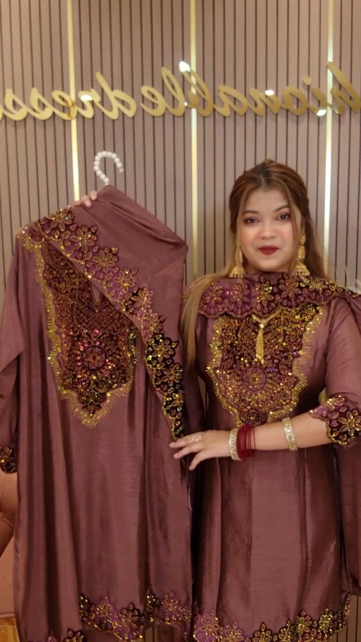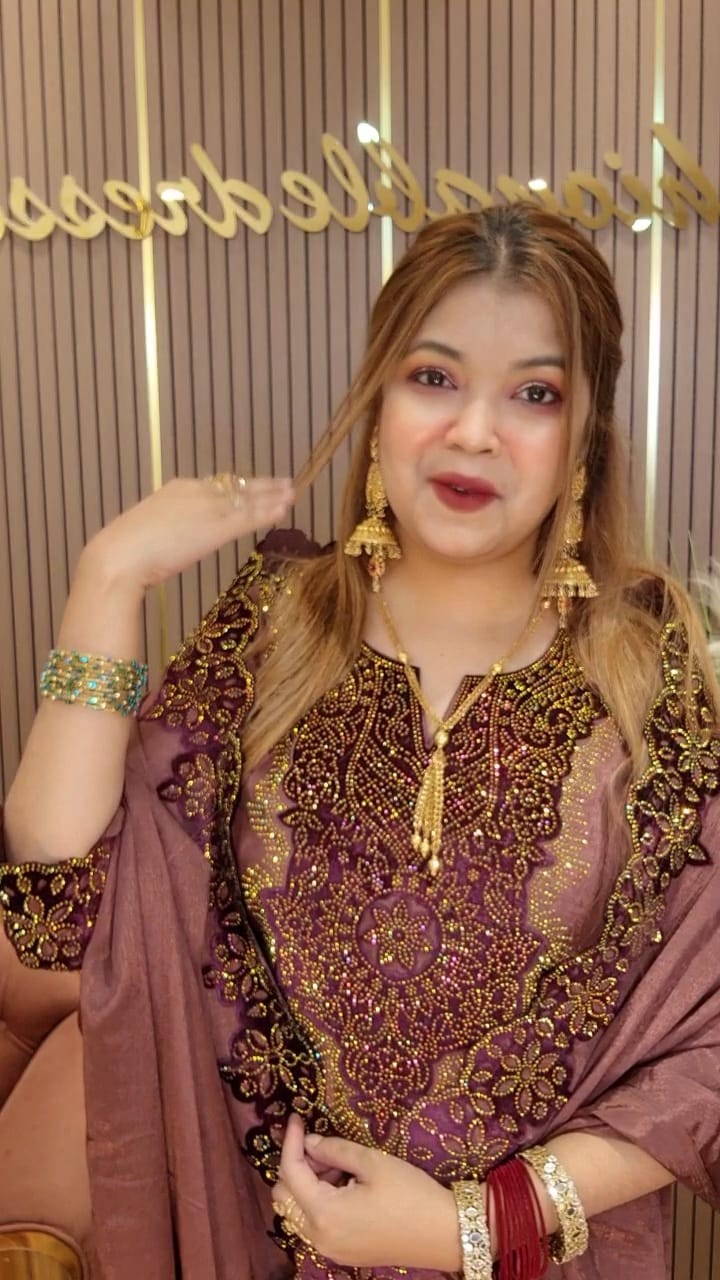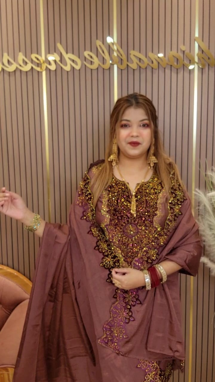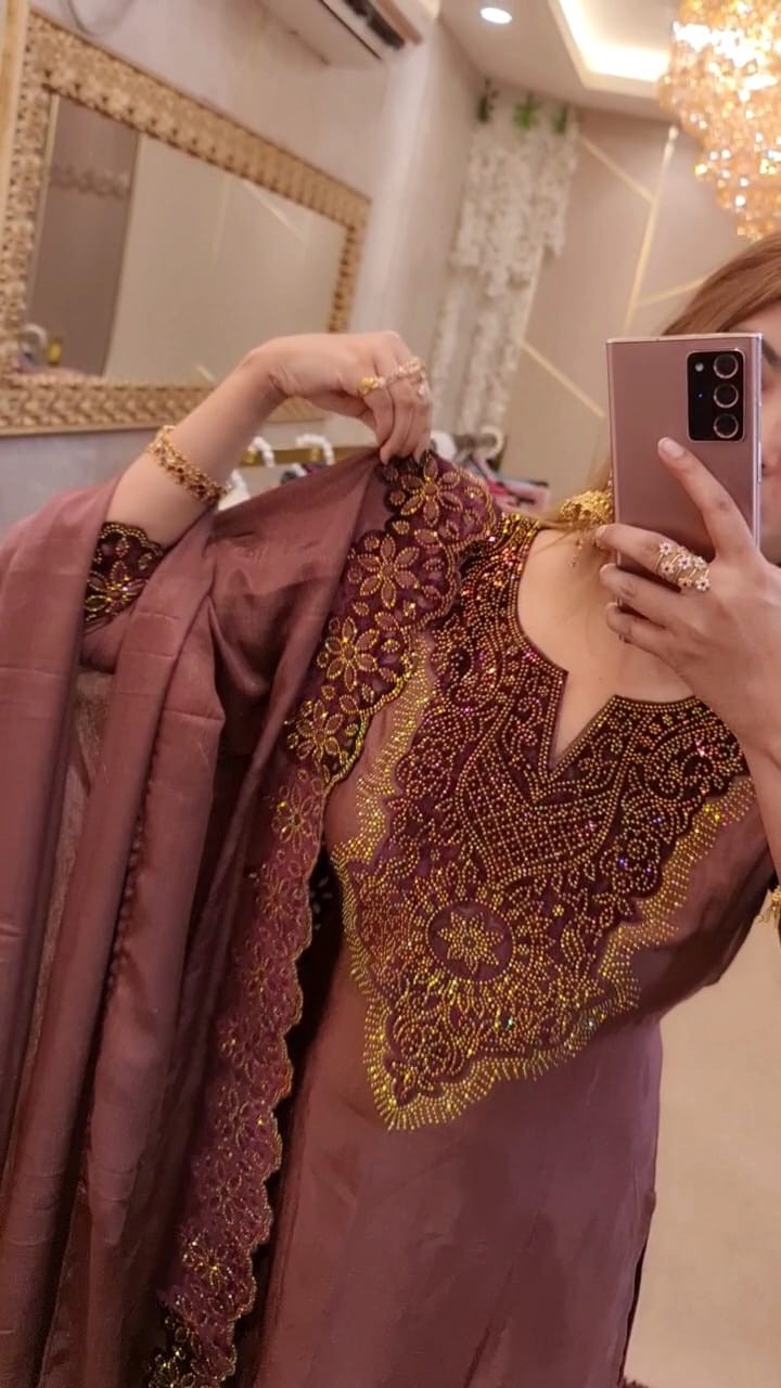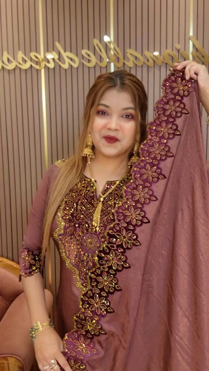 💥Orna imported indian shimmer silk with heavy velvet cutwork on one side with stone setting